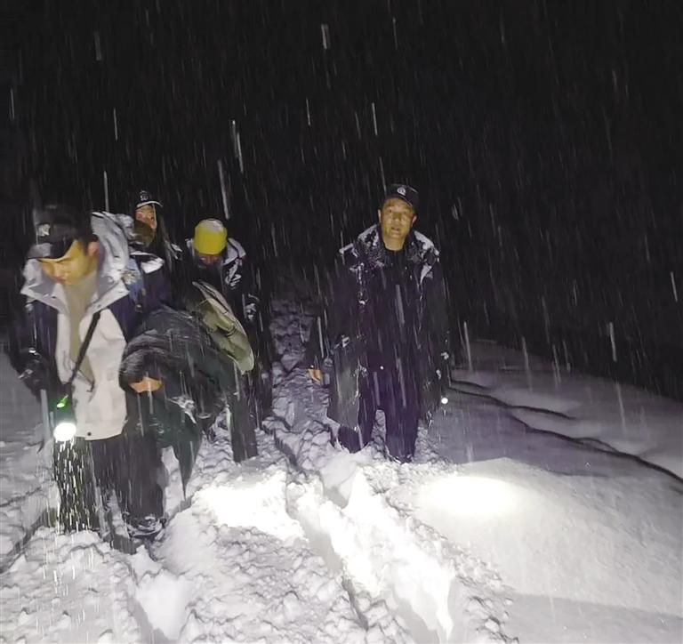 盡管如此,搜救人員沒有放棄。他們一邊緩慢前行,一邊大聲呼喊失聯(lián)人員的名字。盡管聲音在呼嘯的風(fēng)雪中顯得微弱,但他們始終堅持。即便體力透支、鞋底結(jié)冰、衣服浸濕、臉頰被凍傷,也無人停下腳步。