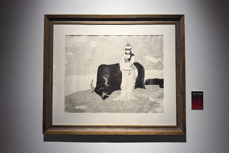 步入展廳,經(jīng)典版畫與“藏族祥巴”作品交相輝映。作為展覽的重頭戲,“藏族祥巴”融合傳統(tǒng)繪畫與版畫技法,色彩濃烈、紋樣繁復(fù),生動(dòng)展現(xiàn)藏族民俗風(fēng)情與精神內(nèi)涵;經(jīng)典版畫則以多元風(fēng)格,記錄時(shí)代變遷與地域特色,既有細(xì)膩寫實(shí)的生活圖景,也有充滿張力的抽象表達(dá)。