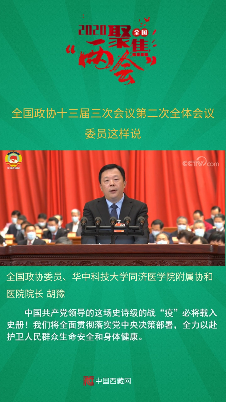 全國政協(xié)委員、華中科技大學(xué)同濟(jì)醫(yī)學(xué)院附屬協(xié)和醫(yī)院院長胡豫發(fā)言說,中國共產(chǎn)黨領(lǐng)導(dǎo)的這場史詩級(jí)的戰(zhàn)“疫”必將載入史冊(cè)!我們將全面貫徹落實(shí)黨中央決策部署,全力以赴護(hù)衛(wèi)人民群眾生命安全和身體健康。