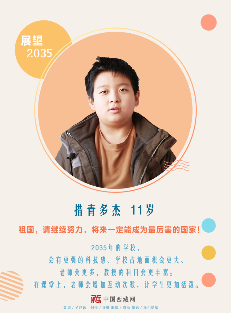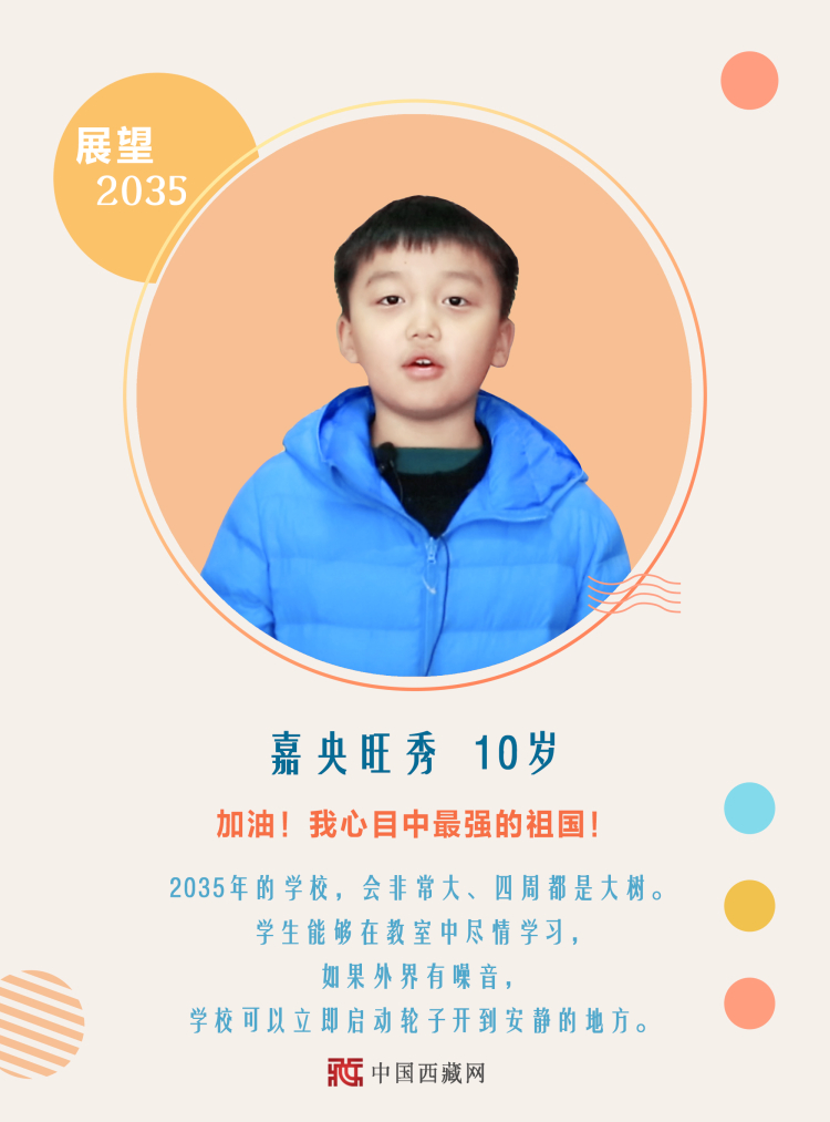 黨的十九屆五中全會(huì)提出,到2035年基本實(shí)現(xiàn)社會(huì)主義現(xiàn)代化。你期待2035年的到來嗎?在你心中,2035年的中國會(huì)是什么樣?未來15年,你有哪些大規(guī)劃、小目標(biāo)?中國西藏網(wǎng)策劃推出系列海報(bào),本期帶你走進(jìn)小朋友們關(guān)于教育“未來力”的展望與暢想。