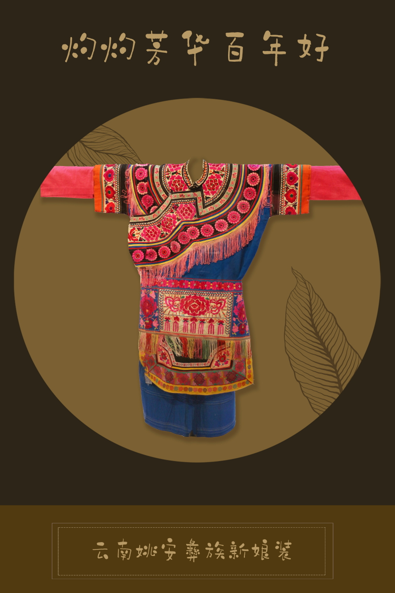 云南省美麗的山川、多樣的民族文化,給予這里的人們無限的想象力和豐富的創(chuàng)作靈感,各民族把自己對(duì)歷史過往的記憶、對(duì)大自然的熱愛、對(duì)美好事物的感受、對(duì)社會(huì)道德的崇尚等等,用服飾文化這一特殊語言表現(xiàn)出來。其中,民族婚禮服飾種類繁多,文化底蘊(yùn)深厚,每一套服裝都反映出云南少數(shù)民族質(zhì)樸的審美情趣與深厚的生活哲學(xué)。