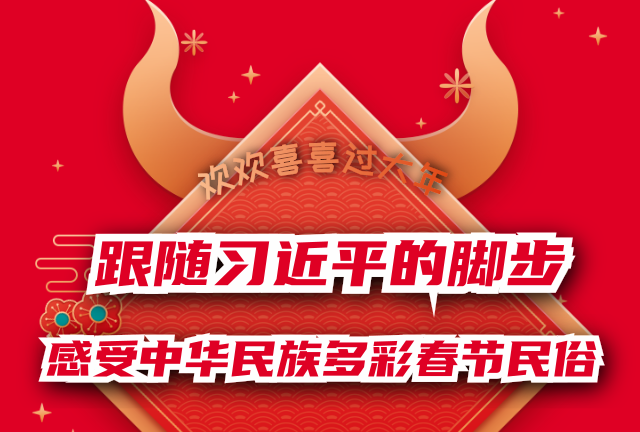 春節(jié)前夕看望慰問基層干部群眾,是習(xí)近平總書記每年的一項(xiàng)重要活動(dòng)。讓我們跟隨習(xí)近平總書記的腳步,一起來感受全國各地多姿多彩的春節(jié)民俗,感受各族人民一家親,歡歡喜喜過大年的幸福與快樂。