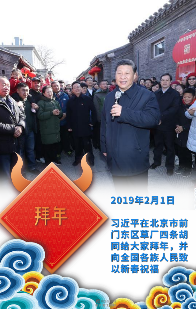 習(xí)近平在北京市前門東區(qū)草廠四條胡同給大家拜年,并向全國各族人民致以新春祝福