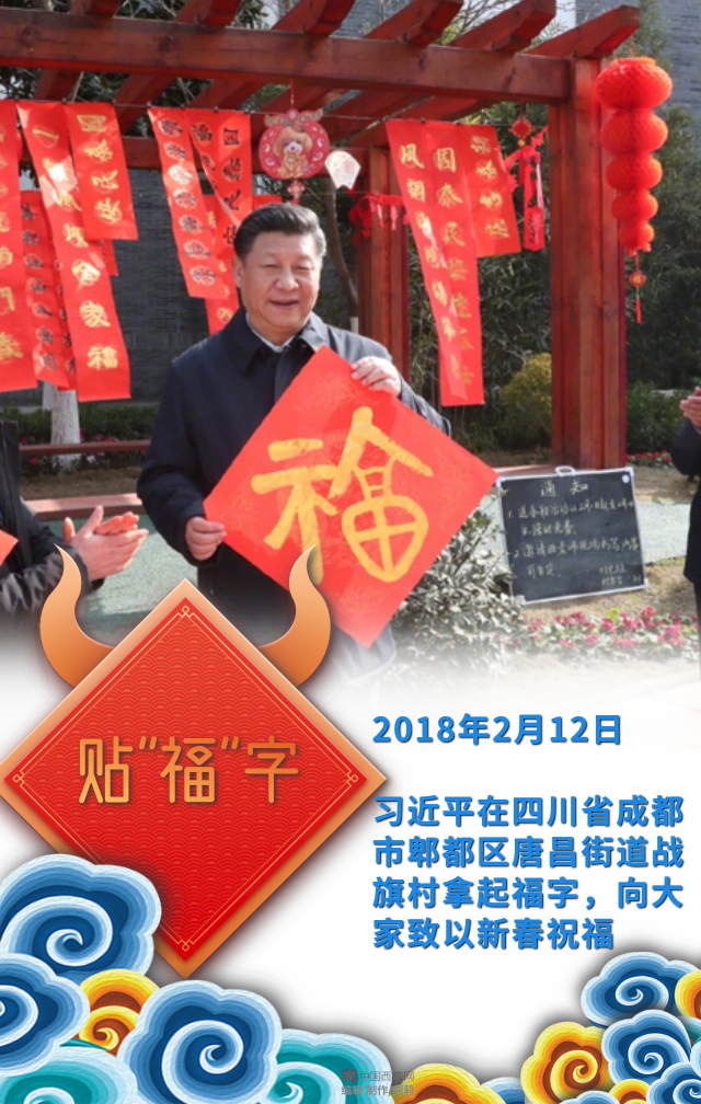 習(xí)近平在四川省成都市郫都區(qū)唐昌街道戰(zhàn)旗村拿起福字,向大家致以新春祝福