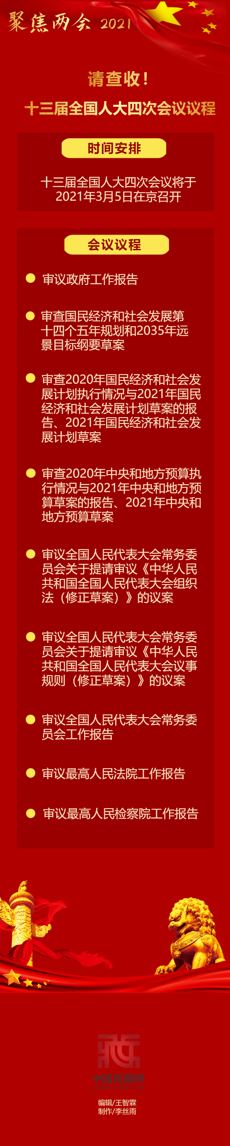 【聚焦兩會(huì) 2021】請(qǐng)查收!十三屆全國(guó)人大四次會(huì)議議程