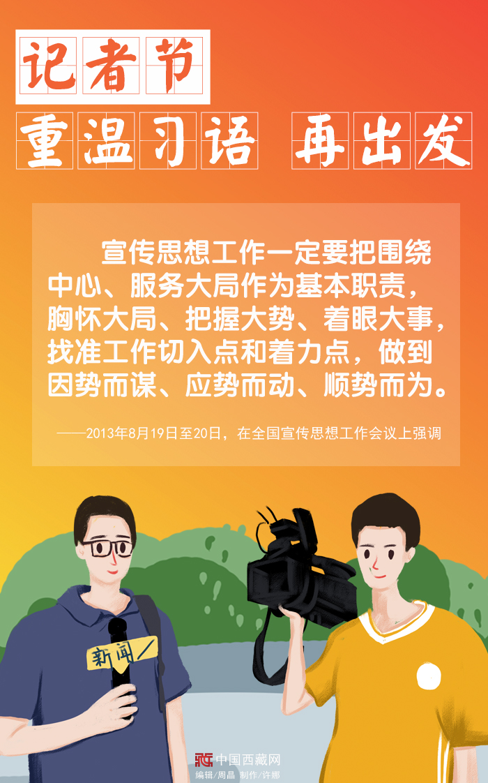 此刻,節(jié)日的主角們或在新聞現(xiàn)場忙碌著,或在抗疫一線記錄著,或在奮筆疾書書寫著……一直以來,習(xí)近平總書記十分關(guān)心新聞工作者,并提出了許多殷切希望。在這個特別的日子里,讓我們重溫總書記囑托,強(qiáng)化責(zé)任擔(dān)當(dāng)再出發(fā)。(中國西藏網(wǎng) 編輯/周晶 制作/許娜)