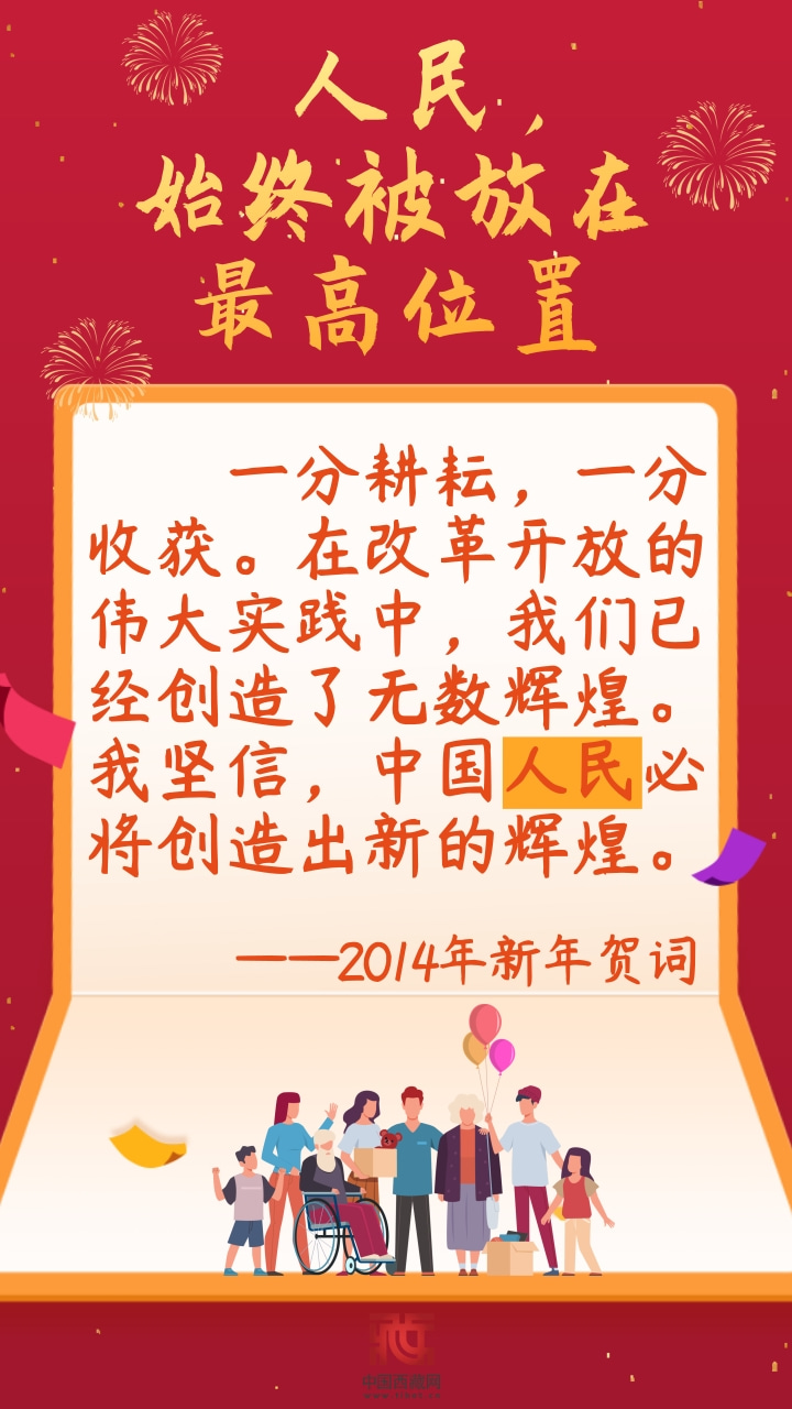 編者按:自2014年新年起,習(xí)近平主席已連續(xù)九年發(fā)表新年賀詞。人民群眾的生活冷暖始終是習(xí)近平主席的牽掛,歷次新年賀詞中都有明顯體現(xiàn),既展示了大國(guó)領(lǐng)袖的博大胸襟,也凸顯出人民領(lǐng)袖的為民情懷。(中國(guó)西藏網(wǎng) 編輯/孫健 制作/許娜)
