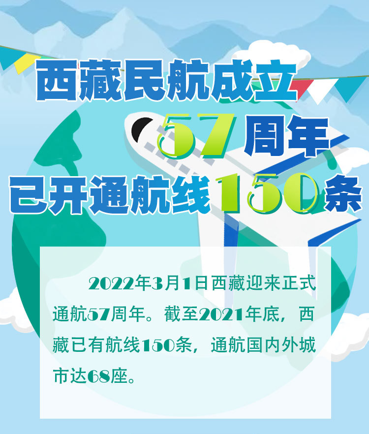 2022年3月1日西藏迎來正式通航57周年。截至2021年底,西藏已有航線150條,通航國內(nèi)外城市達(dá)68座。[詳細(xì)]