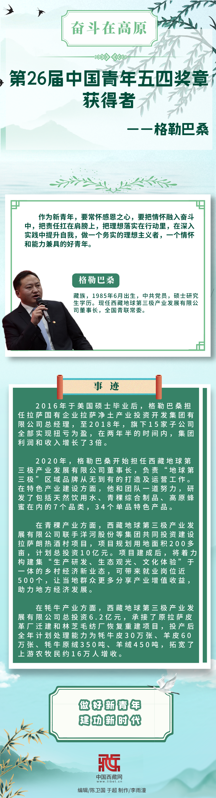 長(zhǎng)圖|【奮斗在高原】第26屆中國(guó)青年五四獎(jiǎng)?wù)芦@得者——格勒巴桑
