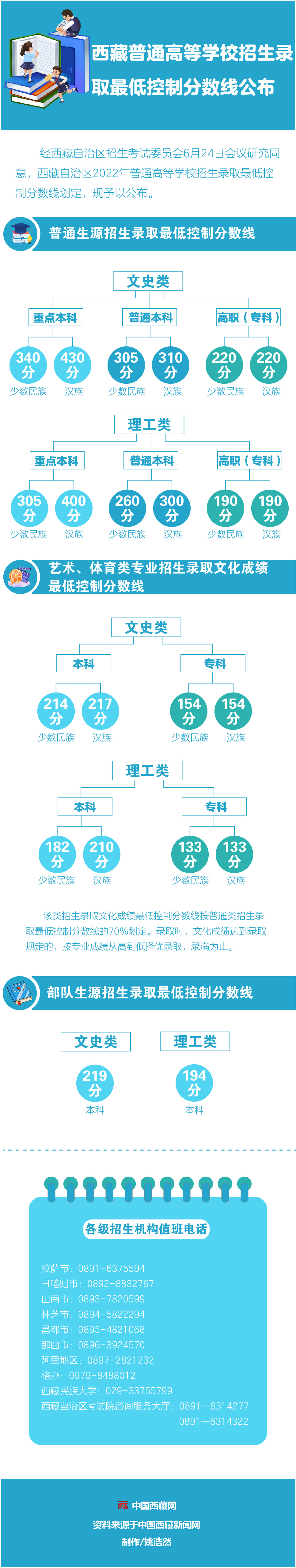 圖解|西藏普通高等學(xué)校招生錄取最低控制分?jǐn)?shù)線公布