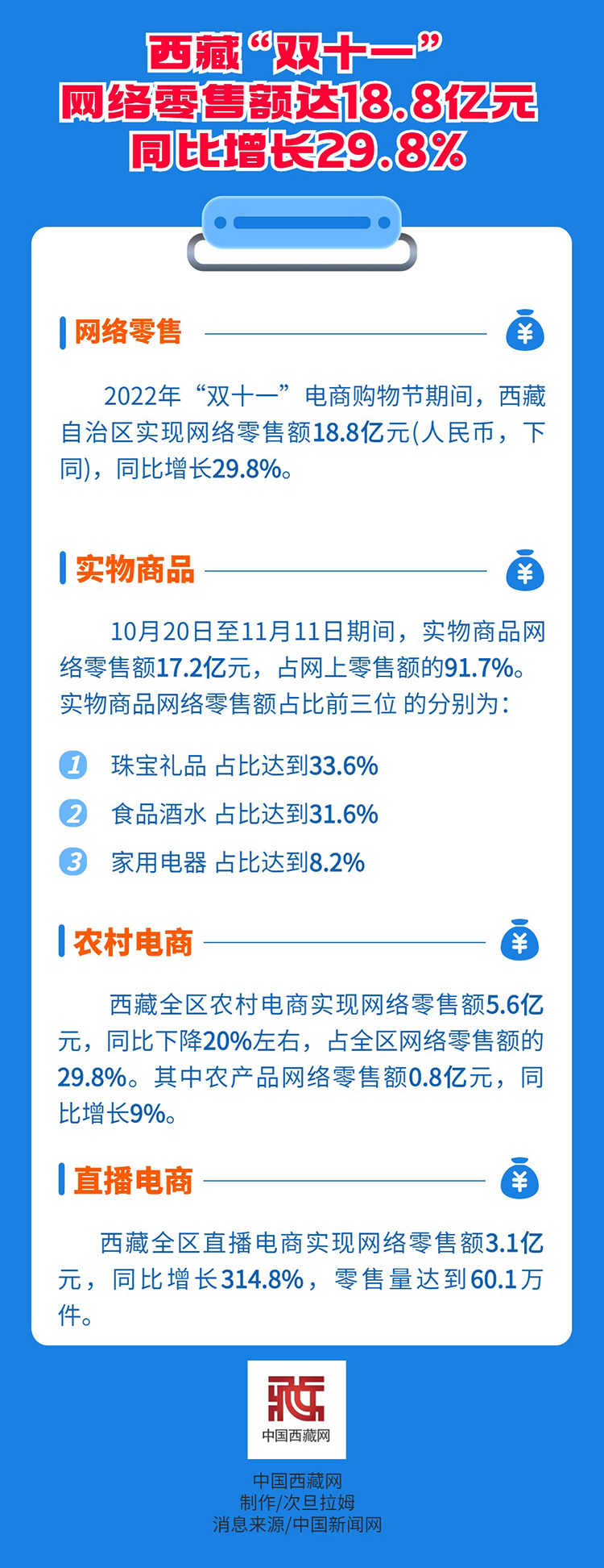 西藏“雙十一”網(wǎng)絡(luò)零售額達(dá)18.8億元 同比增長(zhǎng)29.8%