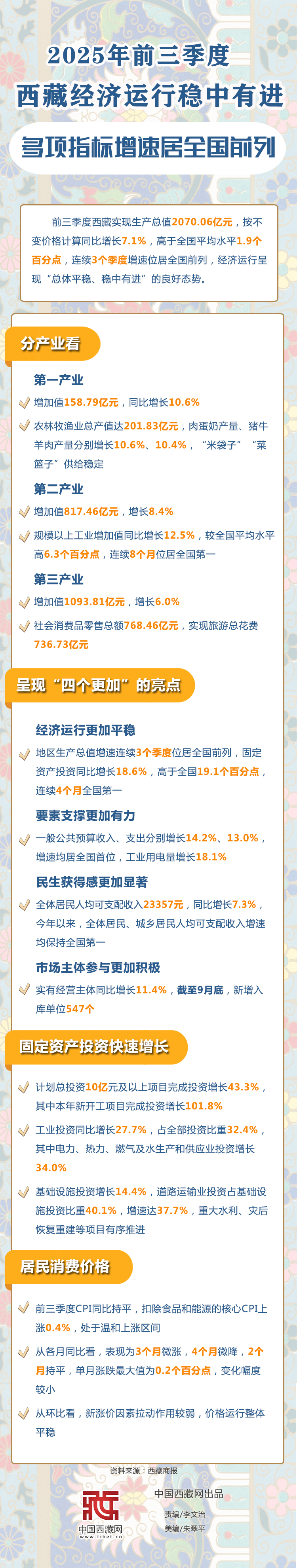 圖解|2025年前三季度西藏經(jīng)濟(jì)運(yùn)行穩(wěn)中有進(jìn) 多項(xiàng)指標(biāo)增速居全國前列