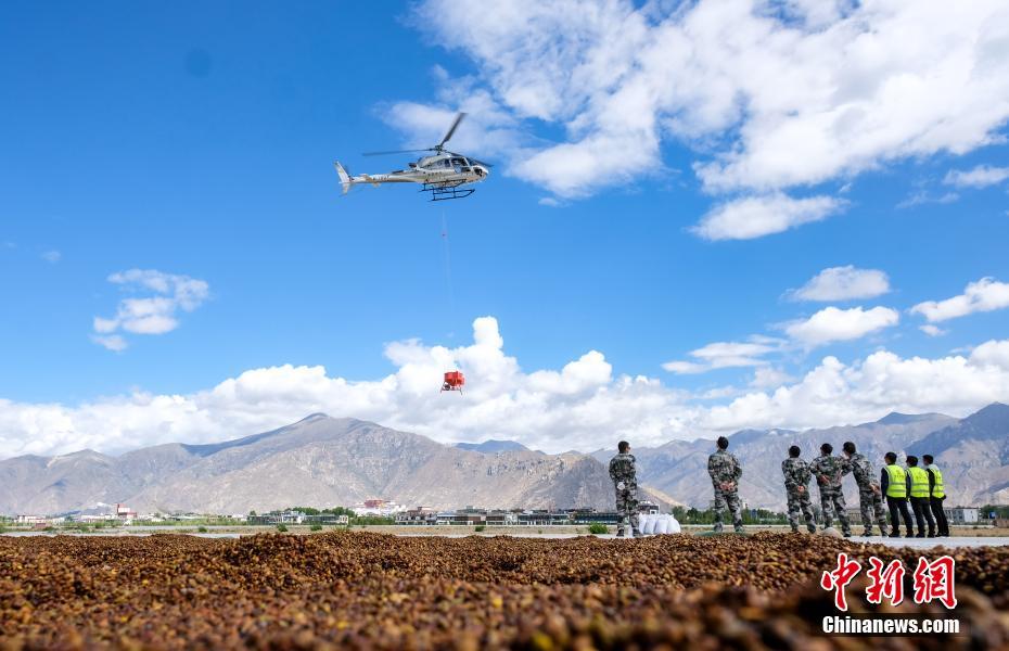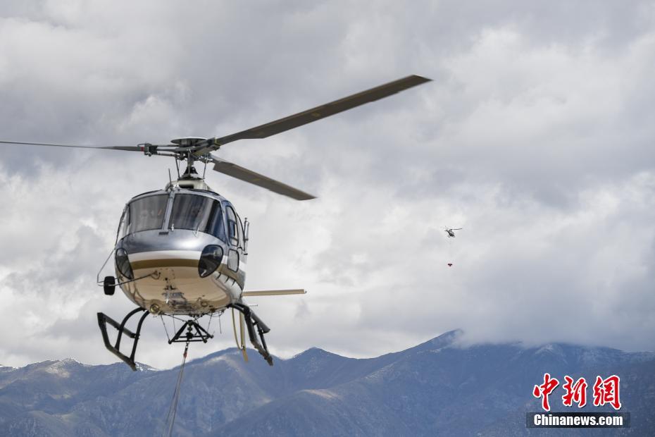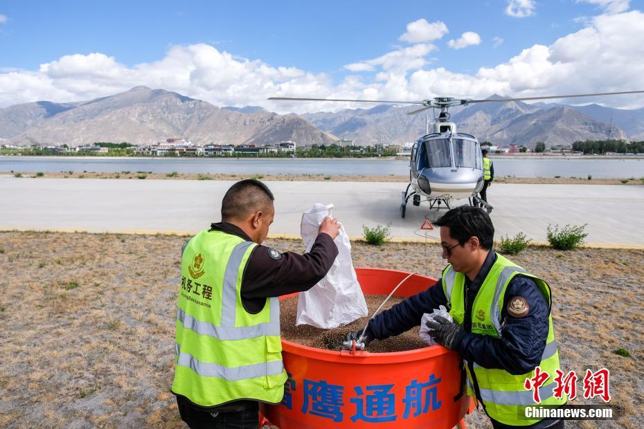 6月9日,西藏拉薩,拉薩雪鷹通航直升機(jī)從機(jī)場起飛前往造林點。當(dāng)日,西藏自治區(qū)林業(yè)和草原局在拉薩市組織開展首次飛播造林工作,此次飛播造林共設(shè)計9個飛播作業(yè)區(qū),其中拉薩市7個,山南市2個,由拉薩雪鷹通用航空公司負(fù)責(zé)飛機(jī)播種。設(shè)計飛播造林面積21.8萬畝,設(shè)計飛機(jī)播種沙棘、砂生槐等樹(草)種約119.3噸。中新社記者 何蓬磊 攝