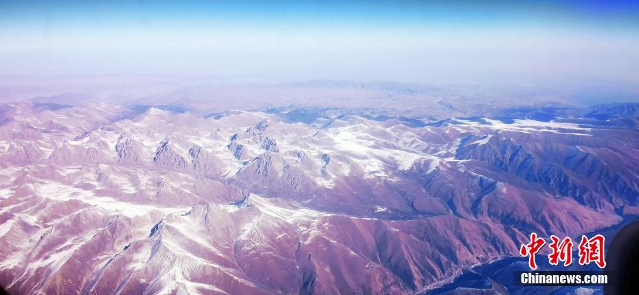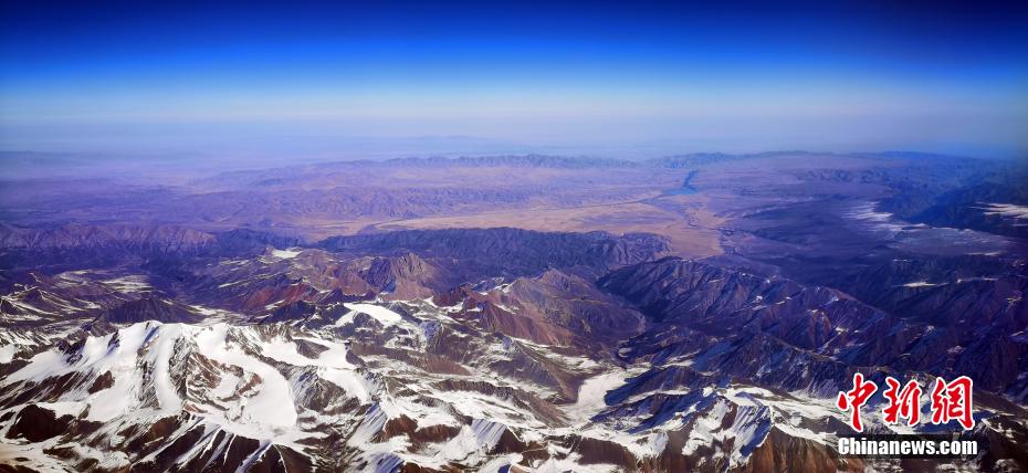 11月9日,記者從萬(wàn)米高空俯瞰祁連山,雪域之巔造型各異,氣勢(shì)恢宏的雪山棱角分明,在皚皚白雪的覆蓋下,山巔似撒了一把把“椒鹽”,陽(yáng)剛與陰柔之美相得益彰,高原湖泊如藍(lán)寶石般鑲嵌在祁連山脈,更有藍(lán)天、白雪、黃沙和諧同框的奇觀,宛如張張“水墨丹青”的油彩畫,看“醉”空中旅人。 魏建軍 攝