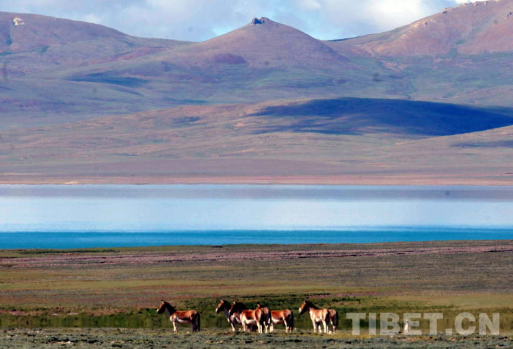這是在藏北無人區(qū)一湖泊前悠閑生活的國家一級保護(hù)動(dòng)物藏野驢(唐召明2009年攝)