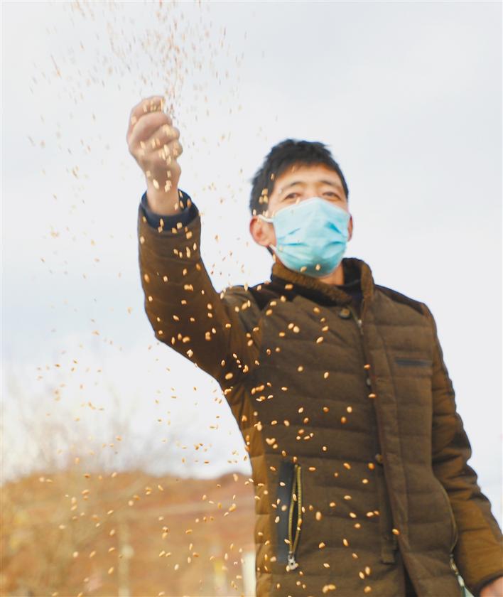 巡護(hù)員多布杰為棲息在林周縣境內(nèi)的候鳥投食。