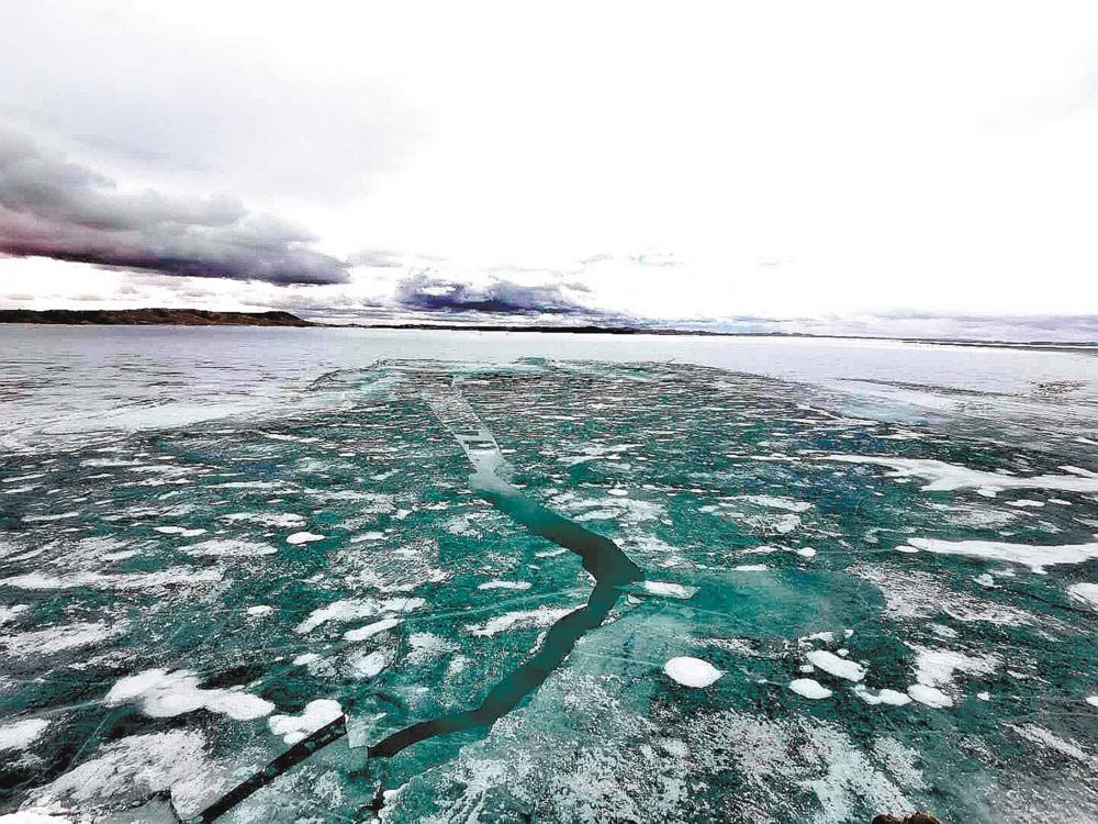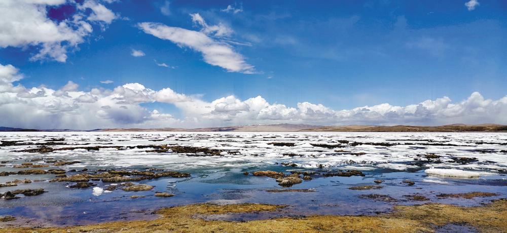 每年4月,鄂陵湖開湖。你能聽到厚厚的冰層斷裂時的巨大聲響。姚斌 張多鈞攝