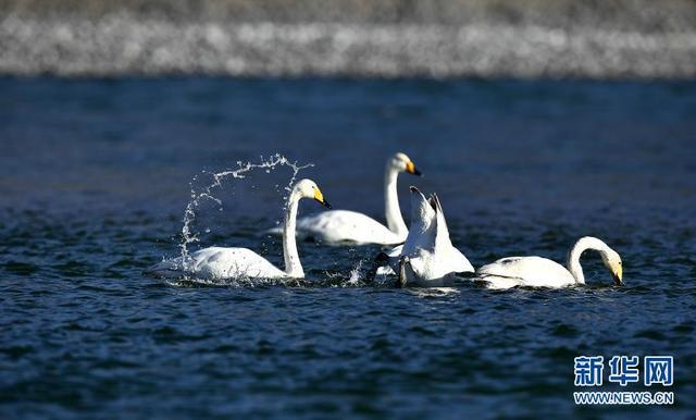 隨著氣溫回暖,位于青海省海南藏族自治州貴德縣境內(nèi)的黃河成為大天鵝的越冬“港灣”,它們在此覓食、休憩,為冬日的黃河帶來勃勃生機。