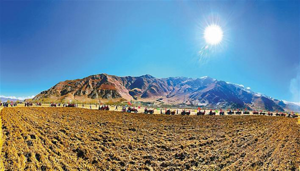 隨著天氣逐漸轉(zhuǎn)暖,西藏自治區(qū)春耕生產(chǎn)從低海拔地區(qū)向高海拔地區(qū)次第展開,農(nóng)牧民耕地播種的忙碌景象勾畫出一幅“人勤春來早,春耕春播忙”的美麗畫卷。