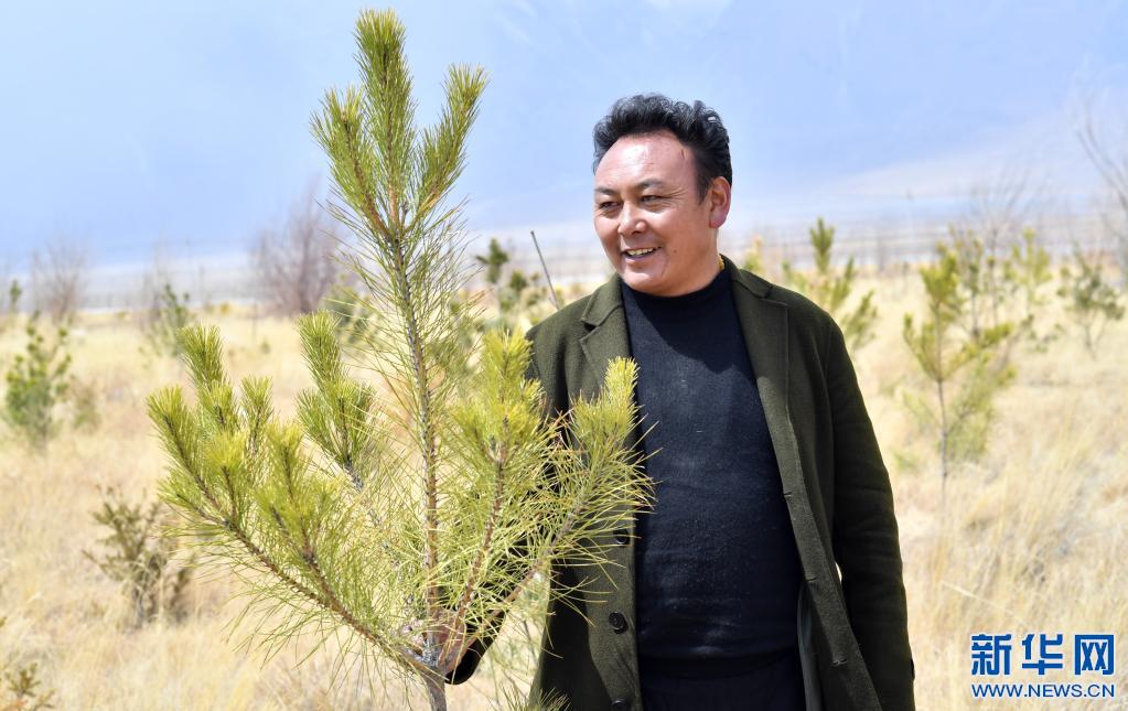 3月30日拍攝的索朗羅布種的樹。新華社記者 覺果 攝