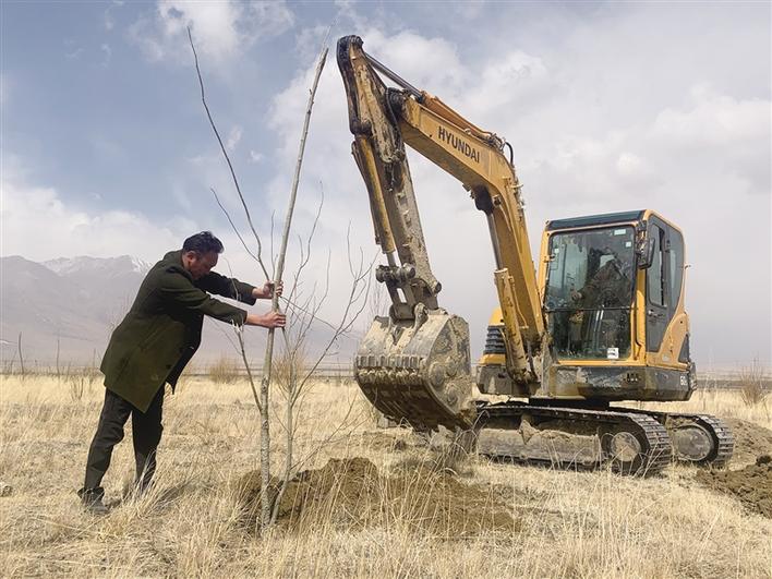 死了那么多樹(shù),為什么還在堅(jiān)持?“那幾年,在這里隨手捧起一把黃土,還會(huì)沙化。我必須堅(jiān)持下來(lái)。”索朗羅布說(shuō)。2015年春天,索朗羅布再次貸款40余萬(wàn)元購(gòu)買(mǎi)了一臺(tái)挖掘機(jī),準(zhǔn)備修建水渠和挖坑。同年3月,索朗羅布又一次獨(dú)自種樹(shù)苗,母親卓瑪央金心疼壞了,于是帶著村里姐妹們前來(lái)幫忙。不僅如此,她們還帶來(lái)了防止草原鼠啃食樹(shù)根的土方法,用塑料瓶圍著樹(shù)根包一圈,既能防止草原鼠搞破壞,還能節(jié)省成本。