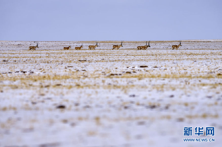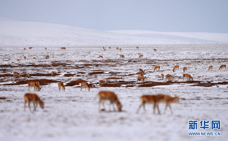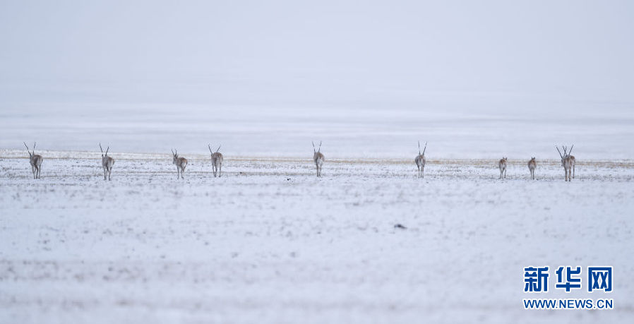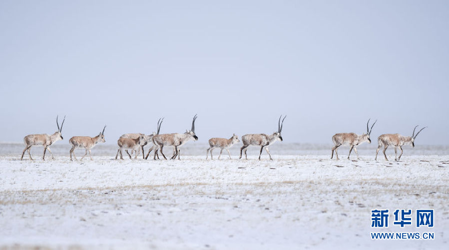 近日,可可西里迎來(lái)降雪,大量藏羚羊匯聚在可可西里五道梁地區(qū),踏上遷徙之路。