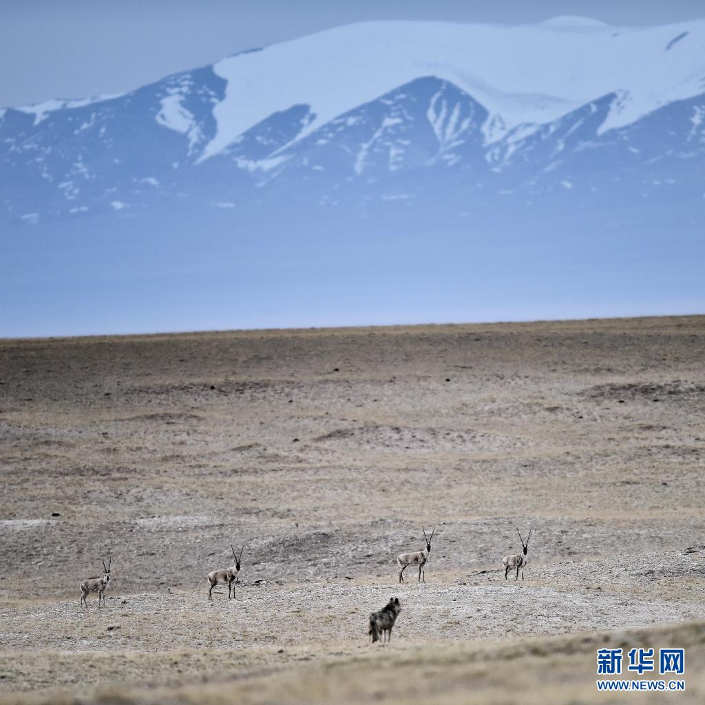 4月20日,藏羚羊在三江源可可西里地區(qū)活動(dòng)。新華社記者 吳剛 攝