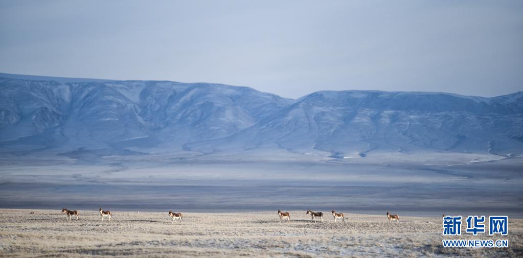 2016年12月2日,藏野驢在三江源可可西里地區(qū)內(nèi)活動(dòng)。新華社記者 吳剛 攝