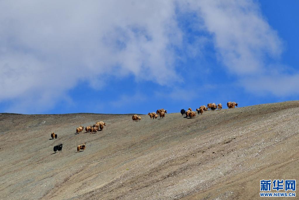 西藏羌塘國家級自然保護(hù)區(qū)里的金絲野牦牛。(新華社記者 張汝鋒 攝)