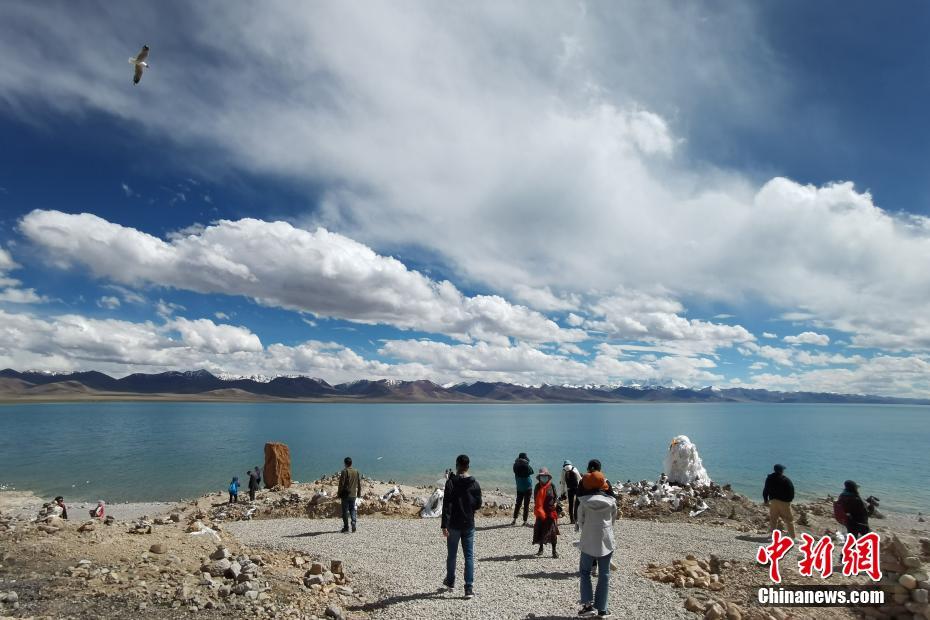 6月初,隨著氣溫逐漸升高,西藏納木錯迎來旅游旺季。納木錯藏語意為“天湖”,是中國第三大咸水湖,位于藏北高原東南部,念青唐古拉山峰北麓,拉薩市當雄縣和那曲市班戈縣境內(nèi),湖面海拔4718米。 中新社記者 陳小愿 攝