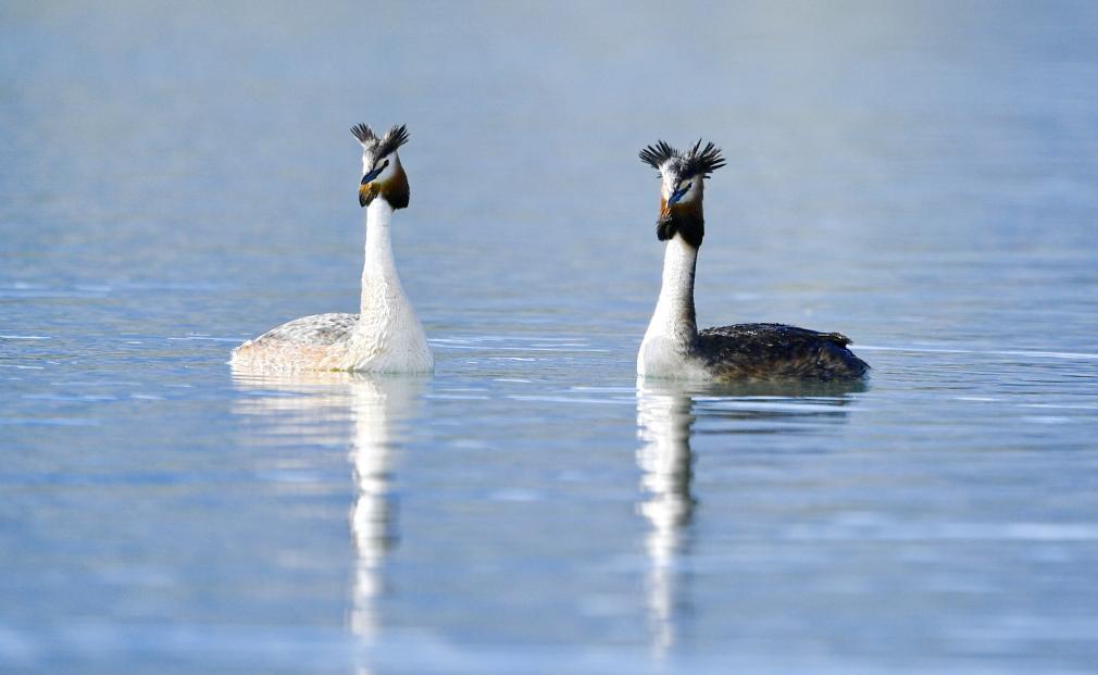 夏日里,鳳頭??和小??在西藏拉薩拉魯濕地國家級自然保護(hù)區(qū)水面上嬉戲。[詳細(xì)] -