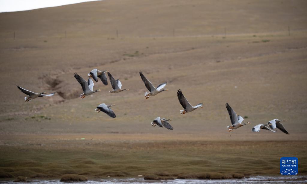 這是9月24日在羌塘國家級自然保護區(qū)拍攝的飛翔的斑頭雁。新華社記者 晉美多吉 攝