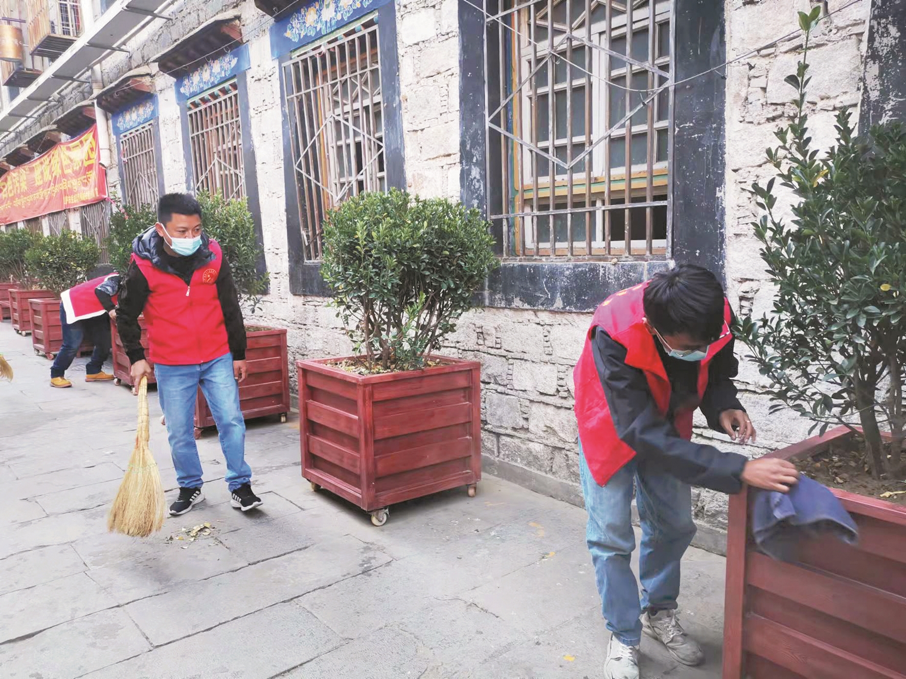 近日,西藏拉薩市城關(guān)區(qū)整治背街小巷工作組工作人員和策門林社區(qū)工作人員共同在策門林社區(qū)開展背街小巷環(huán)境清理工作。活動(dòng)中,工作人員身穿紅馬甲,大家手拿掃帚、抹布分工合作,各司其責(zé),認(rèn)真打掃轄區(qū)衛(wèi)生,充分發(fā)揮不怕臟、不怕累的精神,齊心協(xié)力為轄區(qū)居民營造一個(gè)更美好、更舒心、更便利的生產(chǎn)生活環(huán)境。同時(shí),工作人員還給社區(qū)居民宣傳環(huán)保知識(shí),引導(dǎo)廣大居民群眾充分發(fā)揮主人翁意識(shí),從自身做起,從一點(diǎn)一滴做起,共同維護(hù)社區(qū)良好環(huán)境。