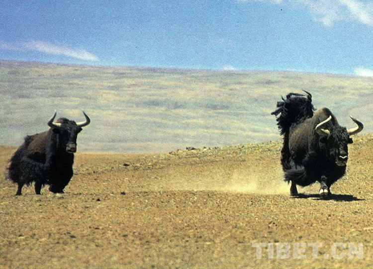 性情強(qiáng)悍的野牦牛傳宗接代的方式也是驚心動(dòng)魄的。每年的七八月份是野牦牛的發(fā)情交配季節(jié)。雄性野牦牛相遇,必然展開(kāi)一場(chǎng)激烈的角斗,勝利者獲得對(duì)雌性野牦牛的占有權(quán),戰(zhàn)敗者只能灰溜溜地落荒而逃。
