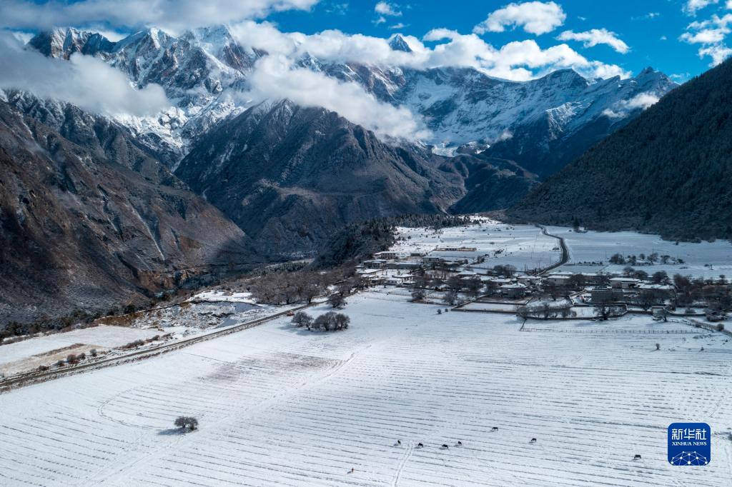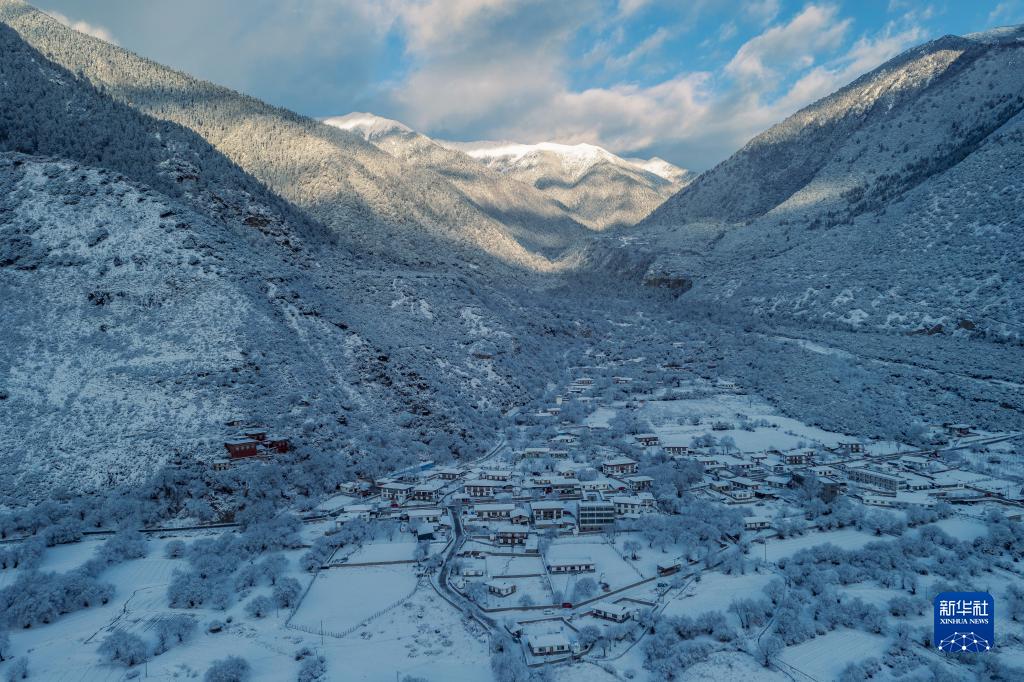 西藏林芝市米林縣派鎮(zhèn)雪景(1月14日攝,無(wú)人機(jī)照片)。新華社發(fā)(董志雄 攝)