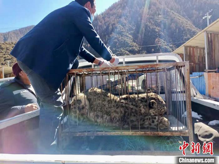 圖為雪豹被救助。 林芝市林草局供圖