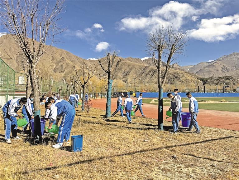近日,拉薩市第三高級(jí)中學(xué)組織學(xué)生開(kāi)展了植樹(shù)活動(dòng)。通過(guò)植樹(shù),不僅讓學(xué)生增強(qiáng)了環(huán)保意識(shí),而且美化了校園環(huán)境。