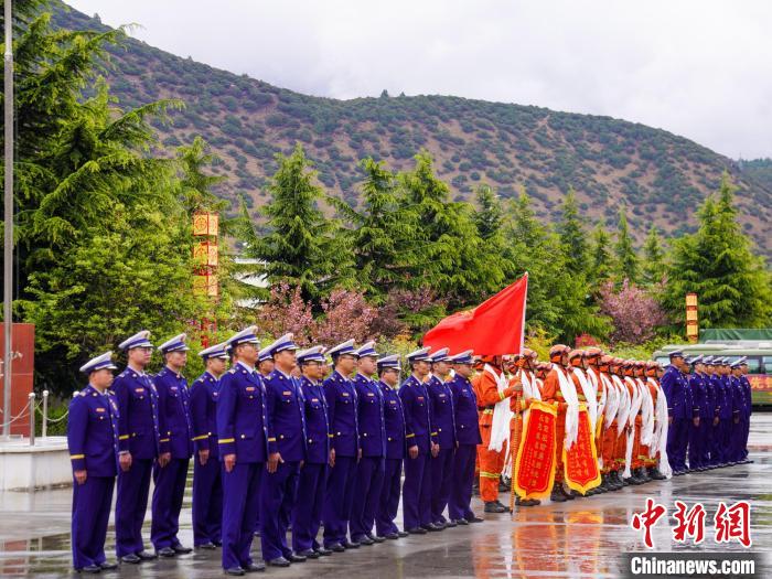 林芝市森林消防支隊(duì)營區(qū)人員列隊(duì)歡迎駐防分隊(duì)歸來?!±顕鵂c 攝