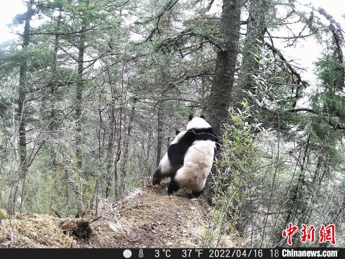 四川黃龍自然保護區(qū)紅外線相機拍攝大熊貓聚集打斗爭奪交配權