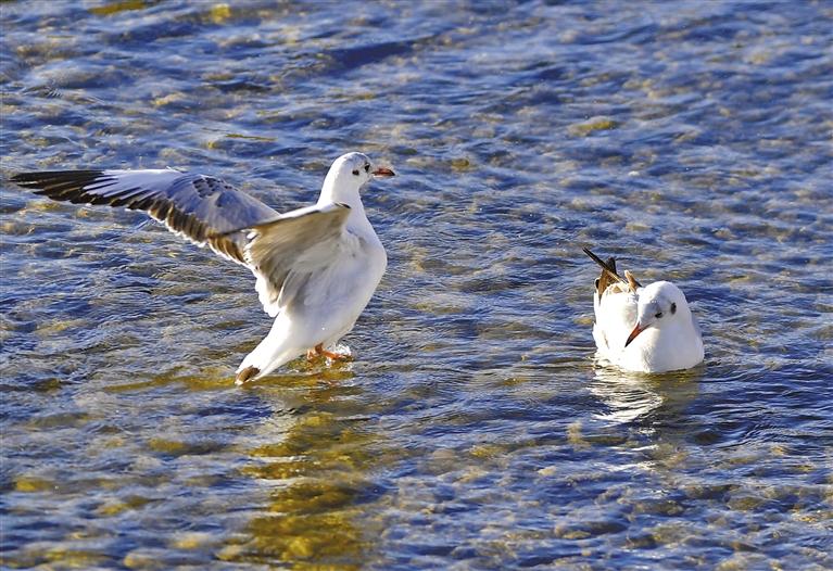 拉薩市拉魯濕地國(guó)家級(jí)自然保護(hù)區(qū)的水鳥(5月7日攝)。新華社記者 張汝鋒 攝
