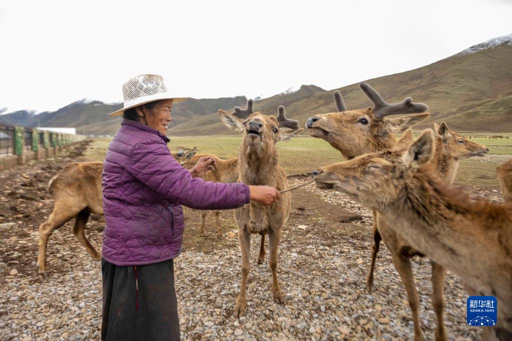 20世紀(jì)70年代,家住昌都市類烏齊縣長毛嶺鄉(xiāng)協(xié)塘村的向秋拉姆發(fā)現(xiàn)并照顧了3只離群的小馬鹿,從此與馬鹿結(jié)緣。40多年來,向秋拉姆悉心照料數(shù)百只馬鹿。目前,她的兩個兒子延續(xù)著照顧馬鹿的使命。
