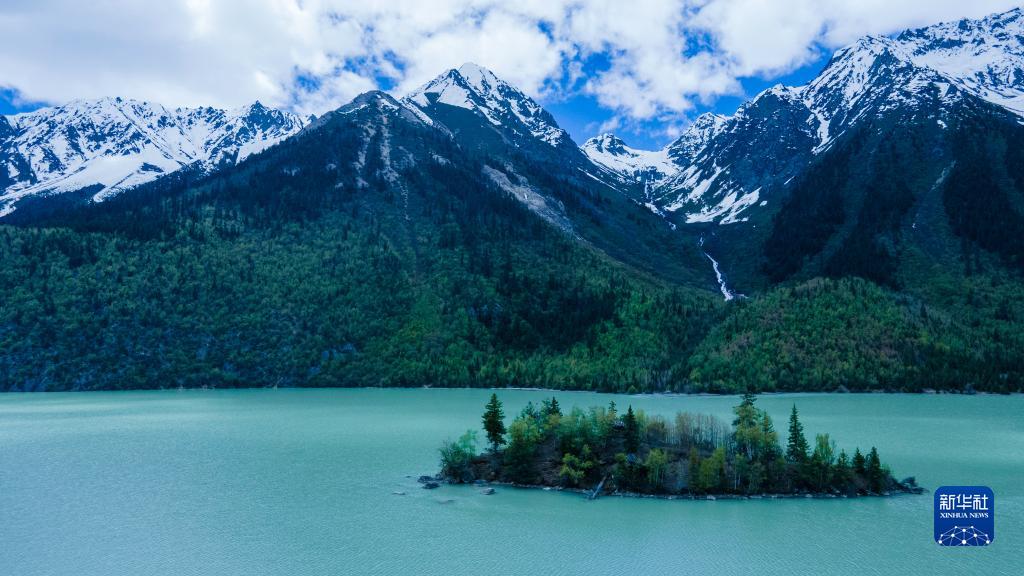 這是5月30日拍攝的然烏湖風(fēng)光(無人機照片)。新華社記者 陳尚才 攝