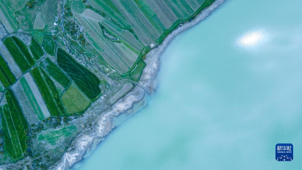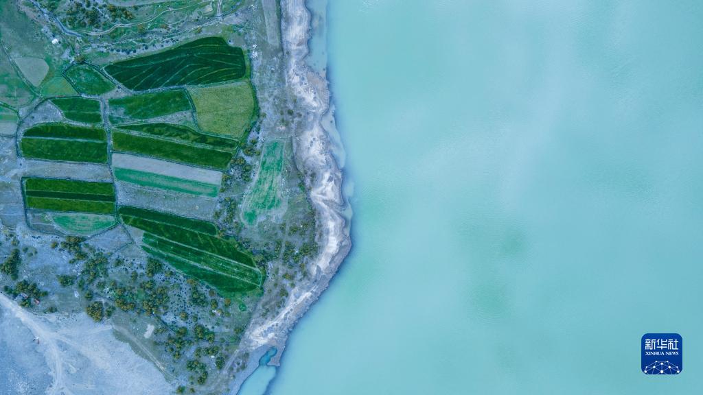 這是5月30日拍攝的然烏湖風(fēng)光(無人機照片)。新華社記者 周荻瀟 攝
