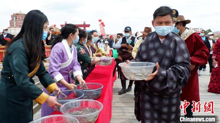 圖為民眾參加青海湖裸鯉增殖放流活動(dòng)?!±铍h 攝
