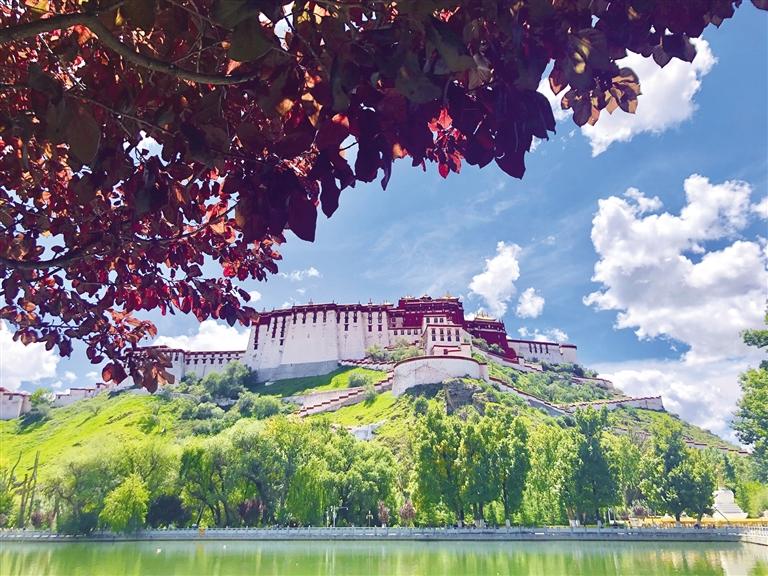 拉薩的夏天有獨(dú)特的風(fēng)格和別致的風(fēng)姿。天空藍(lán)得自帶“美顏”、白云仿佛“觸手可及”、日光耀眼奪目,還有那與夏天不匹配的溫度。拉薩的“熱”很獨(dú)特,站在陽光下有夏天的味道,出汗的時(shí)候去往樹蔭乘涼,又有一絲秋天的涼意。
