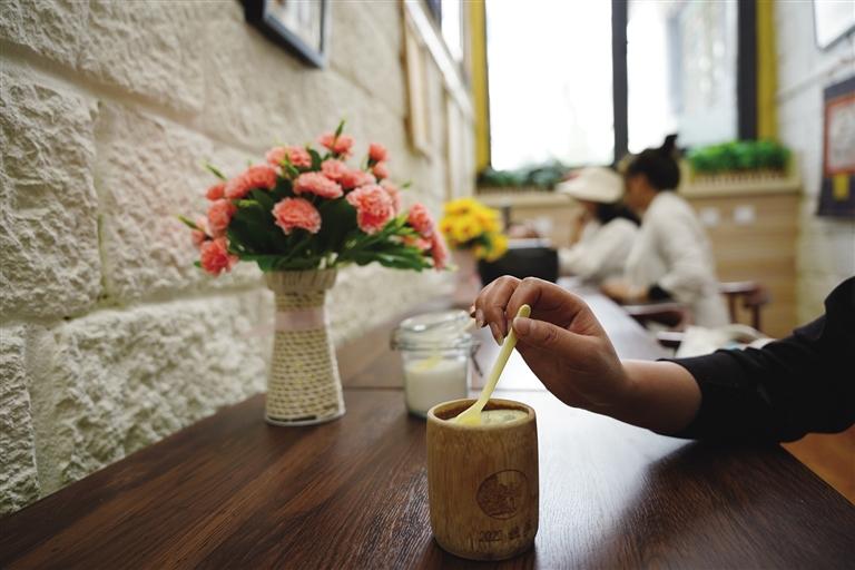 很多年輕人會(huì)說,冰激凌與夏天絕配,殊不知,酸奶也是西藏夏天的絕配。在八廓街的巴扎酸奶坊,來一杯香氣濃郁、酸甜平衡的冰鎮(zhèn)竹筒酸奶,清涼提神,回味無窮。吃完酸奶,已是正午時(shí)分,沿著宇拓路來到布達(dá)拉宮廣場,走近湖邊,水鳥正悠閑地追趕魚群,看著鳥兒靈巧自在的身影,坐在湖邊臺(tái)階上納涼的市民游客也不禁露出了會(huì)心的微笑。