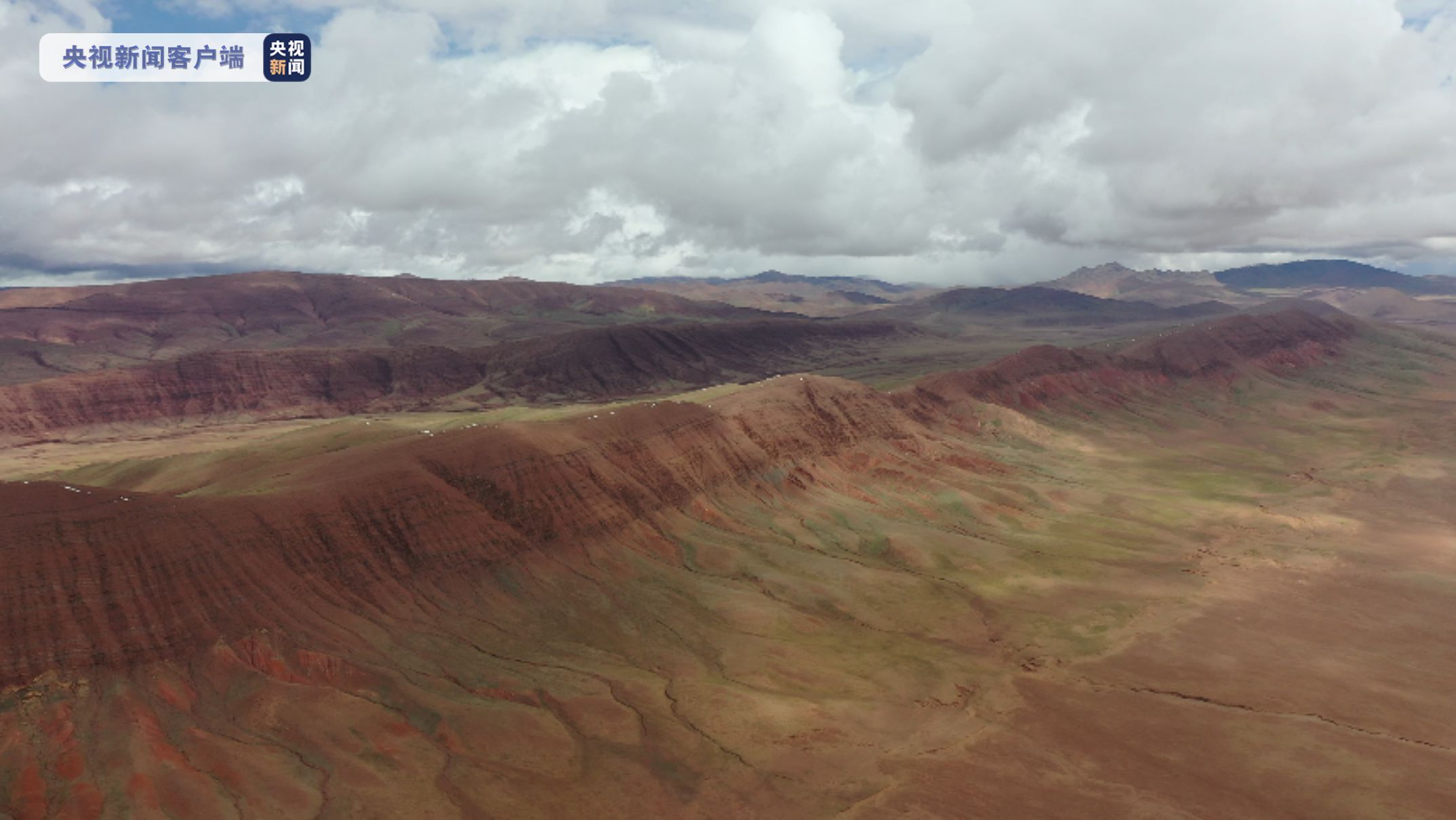 為探索長江源區(qū)的地質(zhì)奧秘,中國地質(zhì)大學(武漢)長江源科考先遣隊對長江源區(qū)進行綜合科學考察時,在長江源區(qū)冬布里山日阿尺曲一帶發(fā)現(xiàn)一條紅色山脈,該山脈由晚白堊紀鈣質(zhì)膠結(jié)的粉、細砂巖與古近紀紫紅色、磚紅色復成分礫巖所組成。