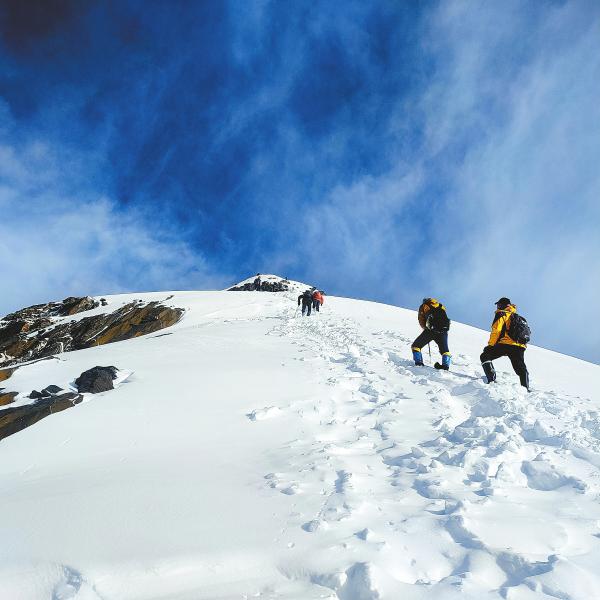 圖為戶外愛(ài)好者攀登至四姑娘山二峰海拔5100米處。 扎西 攝(資料圖片)