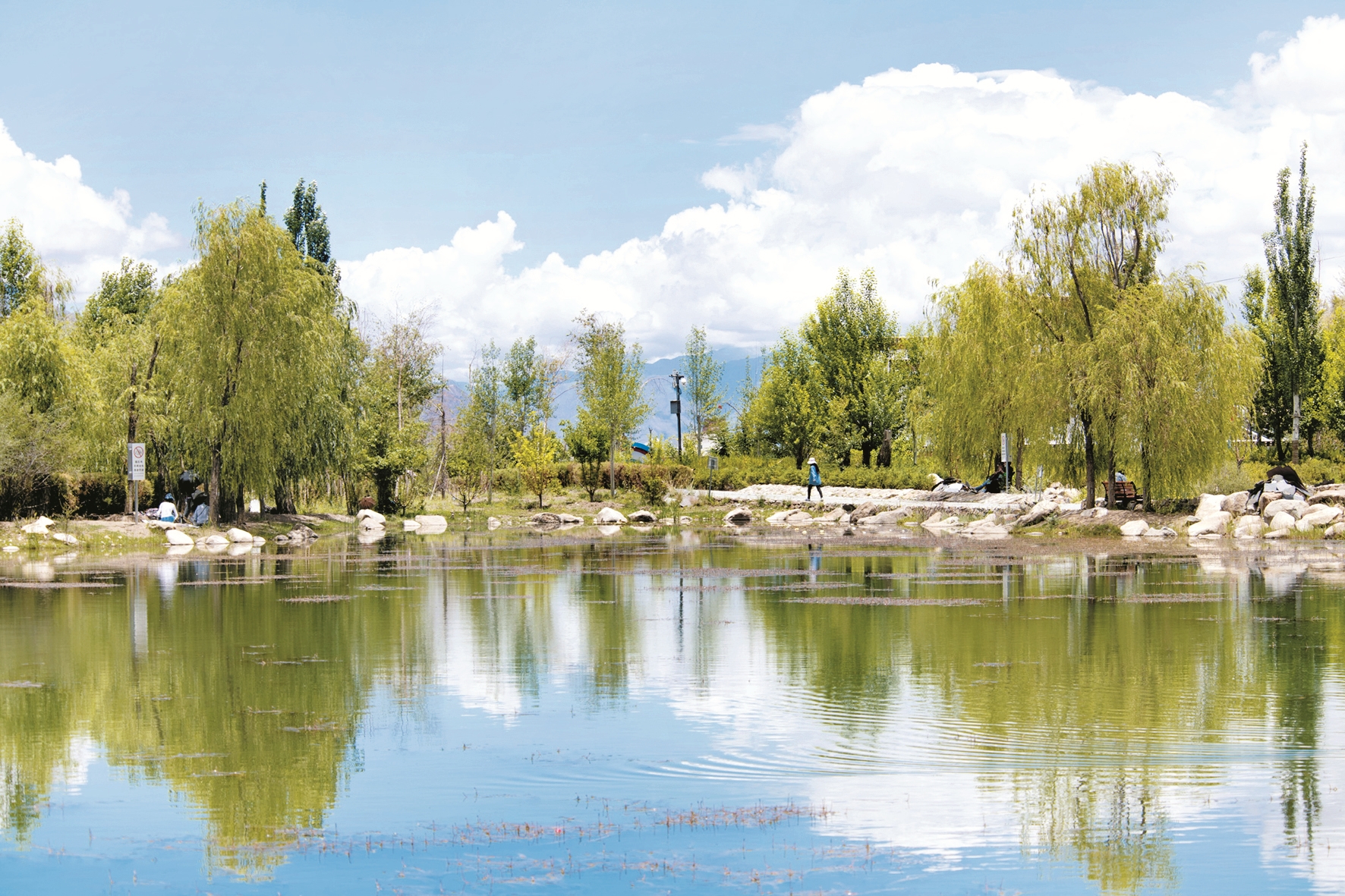 圖為游客正在鏡湖林卡游玩。拉薩融媒記者 玉珠多杰攝