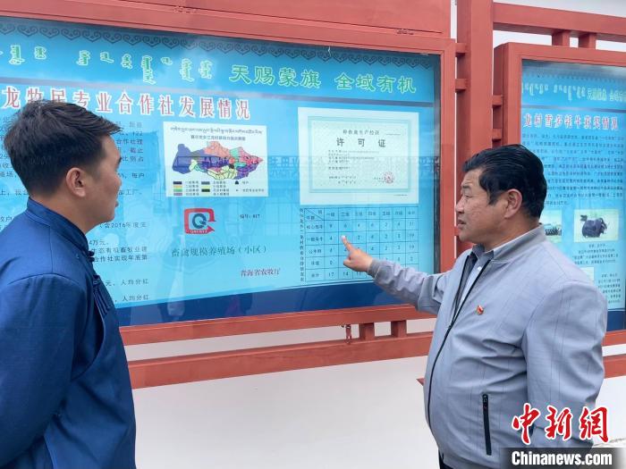 圖為河南縣農(nóng)牧水利和科技局農(nóng)辦項目辦主任才讓南杰(右)介紹合作社情況。祁繡娟 攝